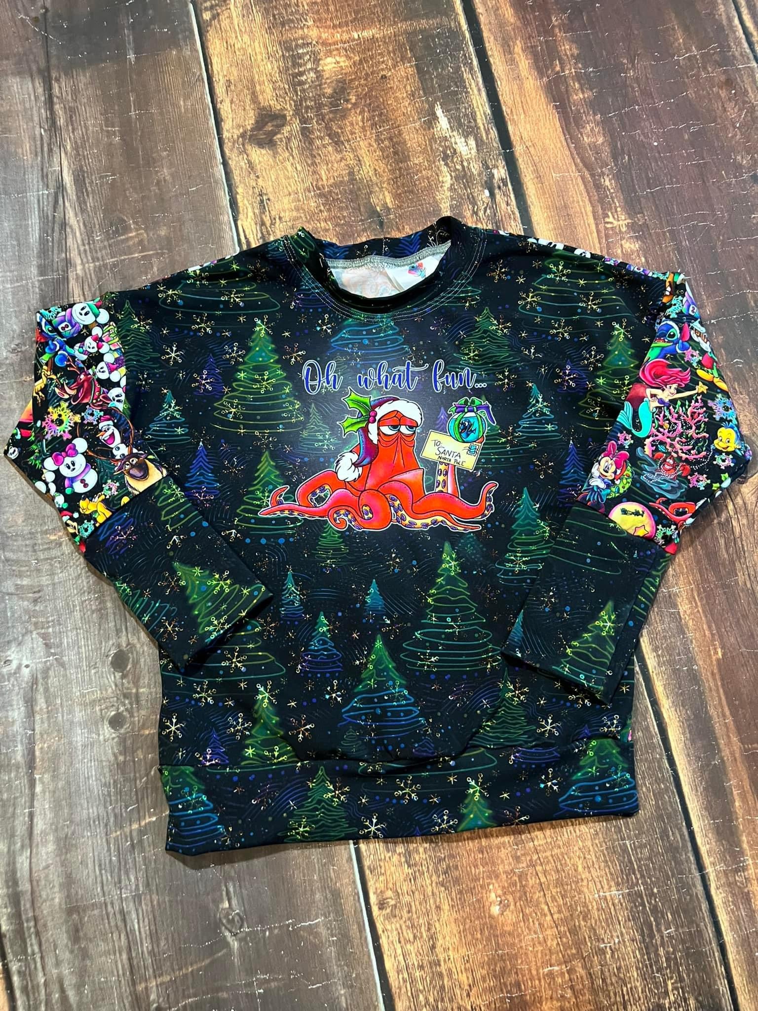 A festive septopus adorns this cute holiday top